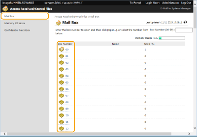 Pode utilizar a Remote UI (UI Remota) para imprimir, enviar ou apagar ficheiros que estejam gravados na caixa de correio ou faxes e I-fax que estejam gravados temporariamente na caixa de fax/I-fax.