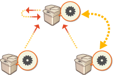 Altere o endereço do servidor de destino em [Synchronize Custom Settings] na Remote UI (UI Remota) de cada máquina cliente e inicie a sincronização de programações personalizadas. Especificar programações detalhadas de sincronização (Máquina servidor ou máquina cliente/servidor)