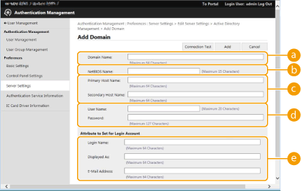 Selecione se as informações do Active Directory do destino de início de sessão são recuperadas automaticamente ou introduzidas manualmente. Para as introduzir manualmente, selecione [Set Manually] e adicione o domínio do destino de início de sessão em [Active Directory Management...].