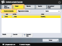 Quando é utilizada gestão de autenticação pessoal, pode impedir que os utilizadores efetuem operações nos trabalhos de outros utilizadores no ecrã <Controlo estado/Cancelar>. <Restringir acesso a trabalhos de outros utilizadores>