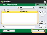 Para verificar o número total de destinos especificados.O número total de destinos especificados é mostrado no topo superior direito do ecrã. Isto permite-lhe confirmar que o número de destinos está correto antes de enviar.