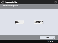Pode personalizar a máquina com base no seu ambiente e necessidades ao configurar as programações descritas neste capítulo. Para iniciar a configuração, carregue em  (Programações/Gravação).