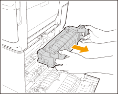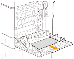 Se o papel estiver parcialmente de fora na parte inferior (lado de entrada) da unidade de fixação, puxe o papel para fora e para baixo cuidadosamente.