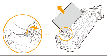 Nos casos que se seguem, contacte o revendedor local autorizado da Canon.Não consegue concluir o procedimento porque existe papel preso à volta da unidade de fixação que não consegue retirar.
