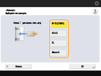 кнопка, для которой тип бумаги конверта был зарегистрирован <OK>. Регистрация часто используемого формата и типа бумаги для универсального лотка |