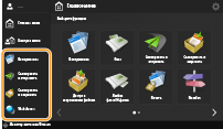 Можно изменить кнопки настроек, которые представлены на экранах основных функций (для копирования, отправки/получения факсов и сканирования). Можно также отобразить другой экран основных функций, настроенный для каждого вошедшего в систему пользователя.
