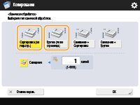 При помещении оригинала на стекле экспонированияЧтобы воспользоваться функцией сортировки и группировки копий оригинала, помещенного на стекло экспонирования, на экране основных функций копирования последовательно нажмите <Параметры>