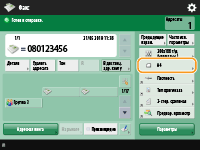 Задания на отпр. по факсу/И-факсу: <Приоритет качества> (<Приор. скор./кач. изобр. для Ч-Б сканирования>)Когда настроено несколько телефонных линийМожно выбрать телефонную линию, используемую для отправки факсов, нажав <Параметры>