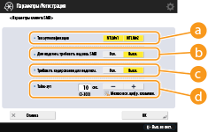 В зависимости от параметров сети при отправке на сервер SMB может отобразиться ошибка. В этом случае настройте время в разделе <Тайм-аут>.