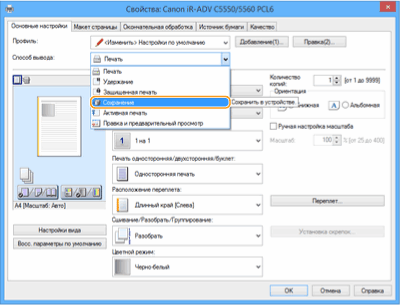 Существует два способа сохранить документы в почтовом ящике: сканирование оригиналов на аппарате и отправка файлов на компьютер с помощью драйвера принтера. Параметры печати сохраняются вместе с документами, которые сохраняются из драйвера принтера, благодаря чему не только исключается необходимость каждый раз задавать параметры печати, но и обеспечивается неизменное качество конечной обработки.