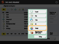 Flera mottagare som har registrerats i adressboken (Registrera mottagare i adressboken) kan kombineras till en grupp. Du kan använda den här funktionen för att skicka dokument och säkerhetskopiera dina data samtidigt eftersom olika typer av mottagare kan registreras i samma grupp. Du kan exempelvis registrera e-postadresser och IP-adresser för filservern tillsammans i en grupp, eller faxnummer och I-faxadresser i en annan.