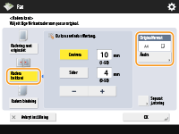 Tryck på <Radering runt originalet> och kontrollera <Originalformat>.