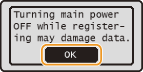 Registration starts. Wait until the <Installed. Effective after main power is turned OFF and ON.> message is displayed.