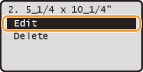 Select the registered size you want to change, and press