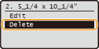 Select the registered size you want to delete, and press