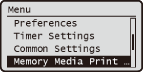 All the settings about the memory media print are listed with short descriptions. Default settings are marked with a dagger (