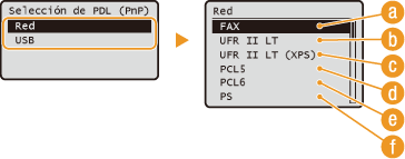 Seleccione <Red> o <USB>