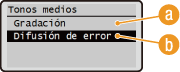 para seleccionar <Gradación> o <Difusión de error>, y pulse