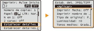 para seleccionar <Establecer detalles de JPEG/TIFF>