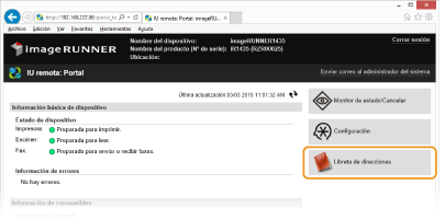 Puede registrar o editar la libreta de direcciones únicamente al iniciar sesión en el modo Administrador del sistema.