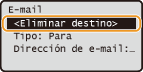 Si desea eliminar destinos de una forma rápida y sencilla sin mostrar una lista de destinosAntes de seleccionar <Confirmar/editar destino> en el paso 1, puede pulsar