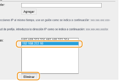 Seleccione una dirección IP y haga clic en [Eliminar]. ![]() |