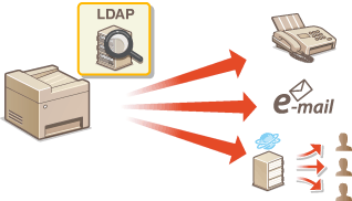 Envío autorizado es una función de seguridad que utiliza un servidor LDAP de la red para evitar e-mails, archivos o faxes no autorizados. Con esta función, los usuarios deben autenticarse con su propia información de inicio de sesión, que está registrada en el servidor LDAP, antes de enviar documentos. Envío autorizado también le permite restringir el envío de documentos únicamente a destinos registrados o prohibir por completo a los usuarios el envío de documentos.