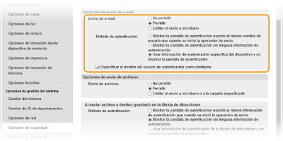 Seleccione esta opción para habilitar el envío de e-mails desde el equipo por parte de los usuarios.