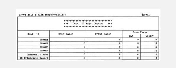 When Department ID Management is enabled, you can print a report to check the total number of pages that were copied, printed, and scanned for each Department ID. The report enables you to monitor usage and improve management.