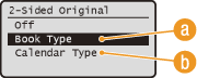Select <Book Type> or <Calendar Type>