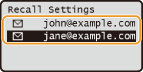 You can select a destination from the three most previously used destinations. When you specify a previously used destination, the machine also sets the same scan settings, such as density, used the last time you sent documents to that destination.