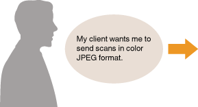 Specify the e-mail address of your client with <Color> and <JPEG> for scan settings, and register the address and settings as a combination in <Favorite Settings>. Registering Frequently Used Scan Settings (E-mail/File Server)