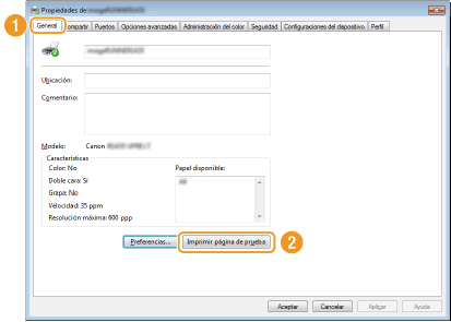 Haga clic en [Imprimir página de prueba] para imprimir una página de prueba.