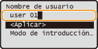 Introduzca su nombre de usuario utilizando las teclas numéricas, seleccione <Aplicar>, y pulse