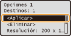 <Opciones favoritas> <Guardar/Eliminar> seleccione la opción edite la opción <Aplicar> <Sí> . No puede cambiar los destinos registrados en la opción con este procedimiento. Registre una nueva opción con los destinos deseados.Si desea eliminar una opción registrada, pulse