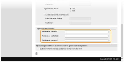 Introduzca hasta 32 caracteres alfanuméricos en el nombre de contexto. Es posible registrar hasta tres nombres de contexto. |