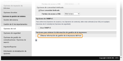 Si no utiliza SNMPv1Si ambas versiones de SNMP se deshabilitan, algunas funciones del equipo no estarán disponibles, como por ejemplo, obtener información del equipo a través del controlador de impresora.