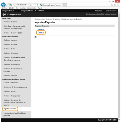 Haga clic en [Importar/Exportar] [Exportar].