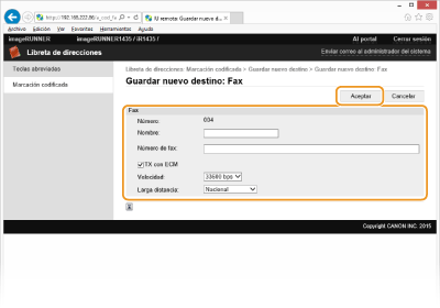 Puede registrar o editar la libreta de direcciones únicamente al iniciar sesión en el modo Administrador del sistema.