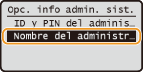 Especifique el <ID admin. sistema> y, a continuación, especifique el <PIN admdor. sistema>.