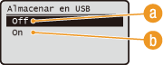 Prohíbe que los datos se almacenen en un dispositivo de memoria USB. Los datos escaneados no pueden almacenarse en el dispositivo de memoria USB.