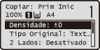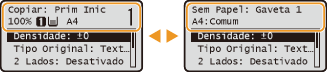 , a tela principal para a função selecionada é exibida. A tela principal de cópia é exibida abaixo como um exemplo.