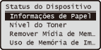 (Monitor de Status), é exibida uma tela que lhe permite verificar o status de documentos que estão sendo impressos, enviados ou recebidos. Você também pode verificar o status da máquina, como o nível de toner, ou as informações de definições de rede como, por exemplo, o endereço IP da máquina.