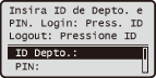 , e se a tela de logon abaixo é exibida, você deve se autenticar antes de usar a função de fax ou digitalização.