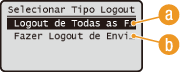 para mudar para outra função que não a que você está usando no momento, a tela de confirmação de logout abaixo é exibida. Para sair do Envio Autorizado (função fax ou digitalização), use / para selecionar <Sim>, e pressione .![]() |