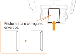 Carregue os envelopes monarca, COM10, DL, ou ISO-C5 na orientação retrato (com as bordas curtas voltadas para a máquina), com o lado sem cola (lado frontal) voltado para baixo. Você não pode imprimir no lado inverso dos envelopes.