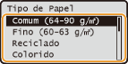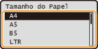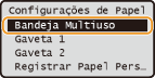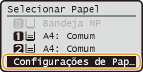 Se a tela <Selecionar Papel> exibida abaixo é visualizada, use / para selecionar <Configurações de Papel>, e pressione .