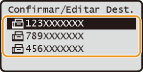 Se você deseja excluir destinatários fácil e rapidamente sem exibir uma lista de destinatáriosAntes de selecionar <Confirmar/Editar Destino> na etapa 1, você pode pressionar