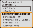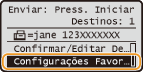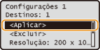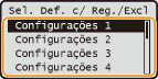 <Configurações Favoritas> <Registrar/Excluir> selecione a configuração edite a configuração <Aplicar> <Sim> . Você não pode alterar os destinos registrados na configuração com esse procedimento. Registre uma nova configuração com o destino desejado.Se você deseja excluir uma configuração registrada, pressione