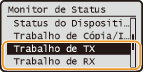 para selecionar <Trabalho de TX> ou <Trabalho de RX> e pressione